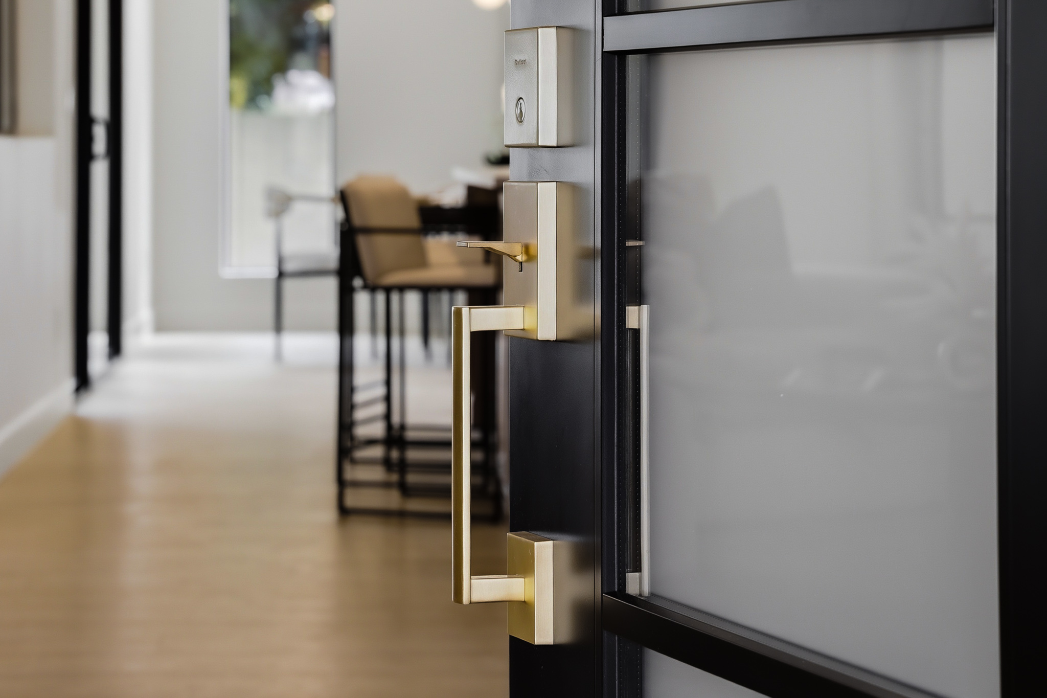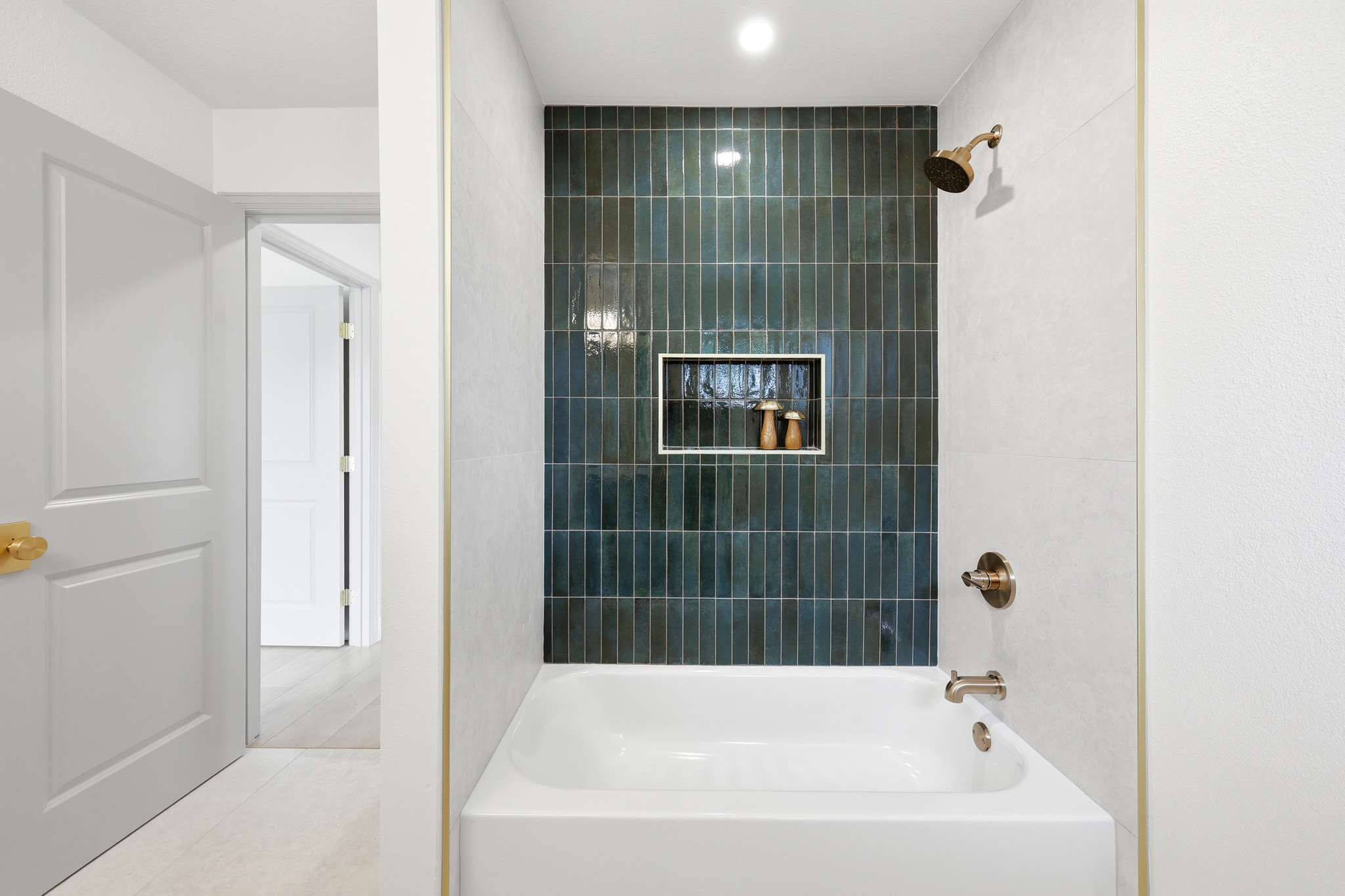 The spa-inspired primary suite serves as a private retreat, showcasing large-format tile and a curbless walk-in shower with three body sprayers for a refined, resort-level experience.