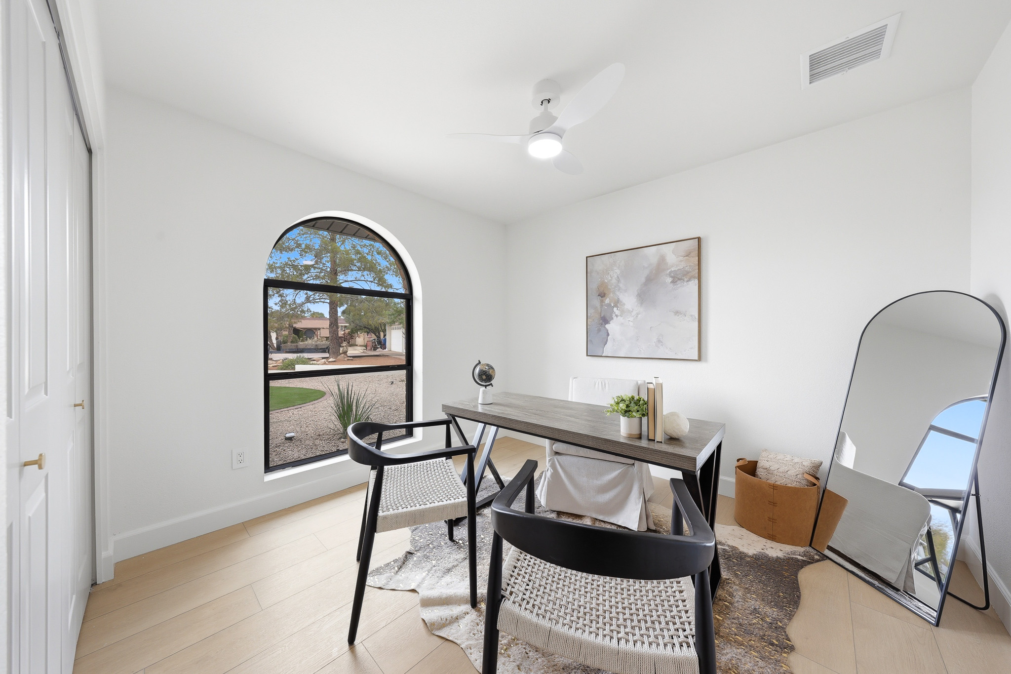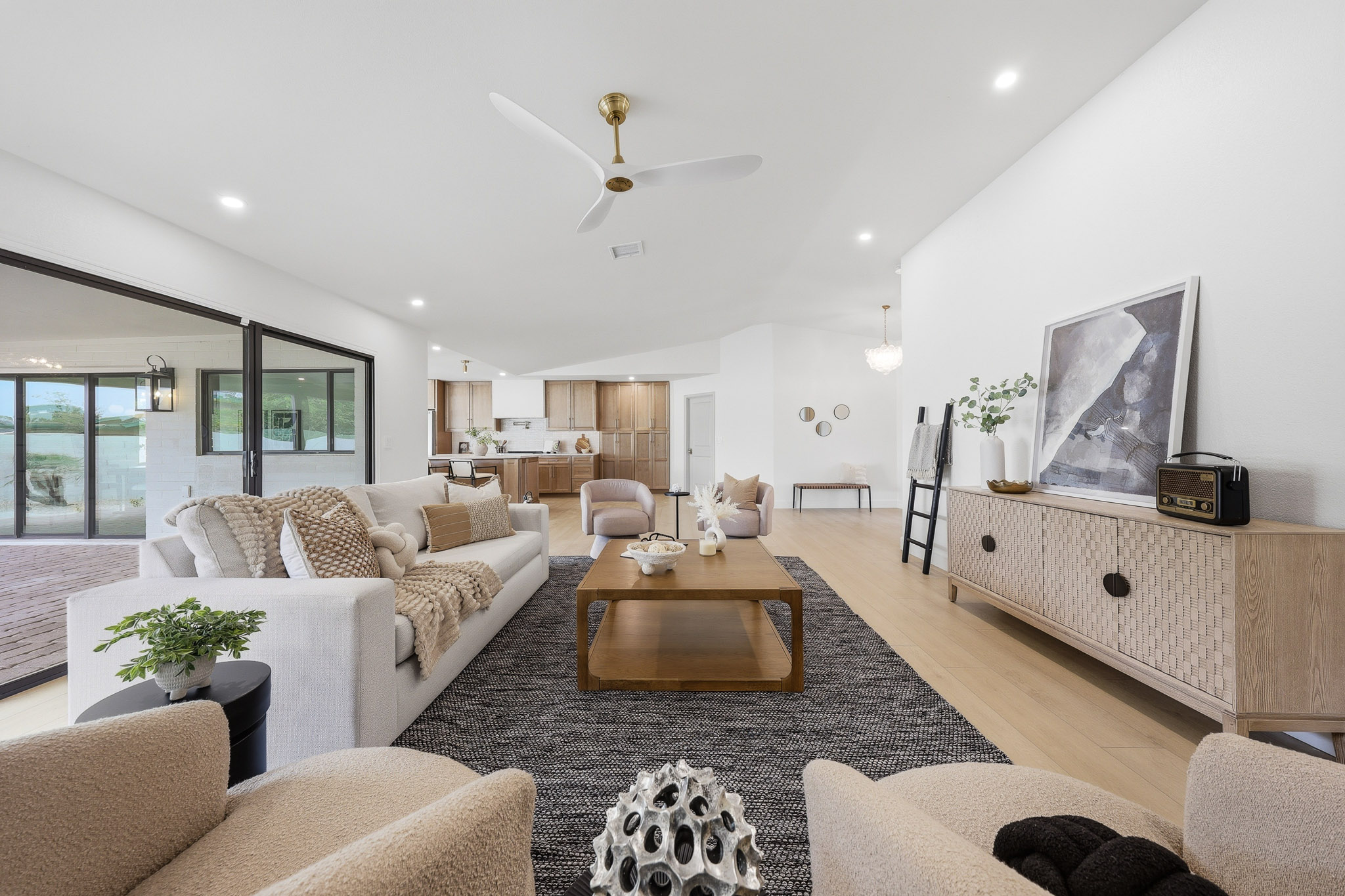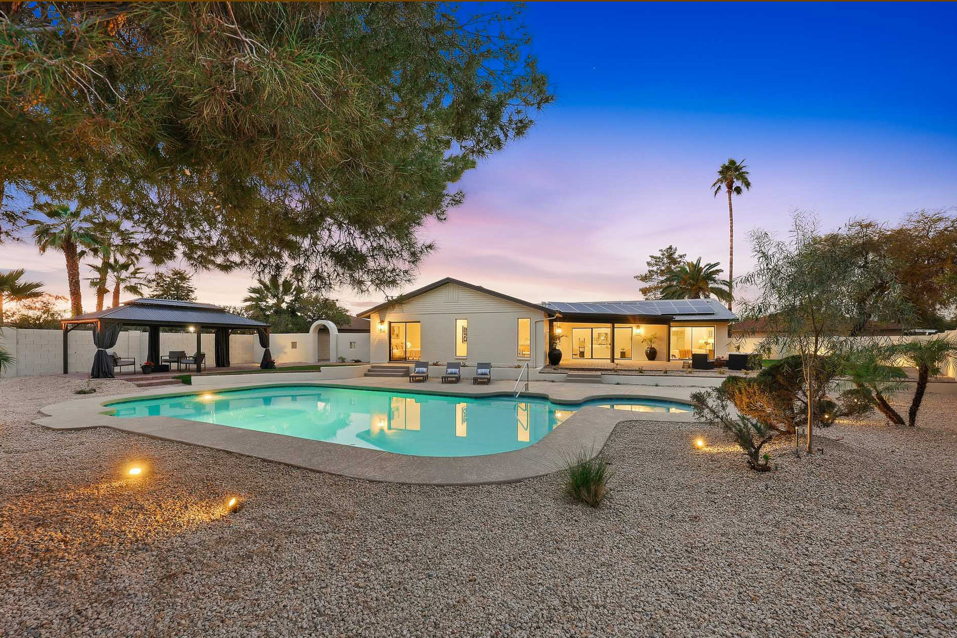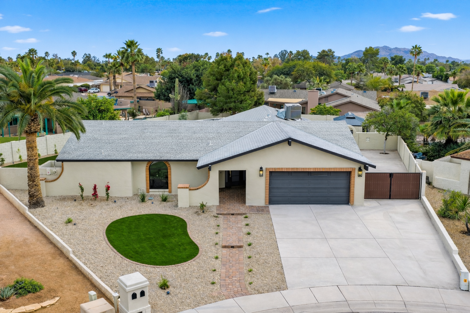 Completely reimagined 4-bed, 2.5-bath residence in the coveted 85254 “magic zip code,” offering a rare split floor plan and curated designer finishes throughout. The light-filled, open-concept living spaces feature soaring vaulted ceilings and premium luxury vinyl flooring, creating an elegant yet inviting atmosphere ideal for both entertaining and everyday living.